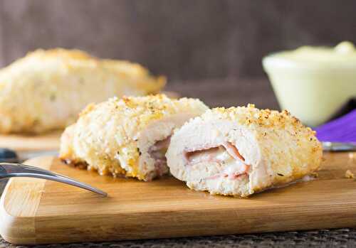 This Baked Chicken Cordon Bleu with Parmesan Panko Crust yields forkfuls of ham and melted cheese in every tender bite!