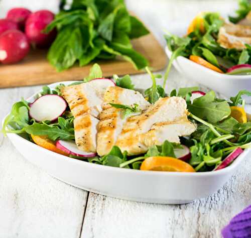 This simple Arugula Chicken Salad with Basil Dressing is bursting with crunchy radish, sweet citrus, tender chicken and an exceptionally fresh tasting basil dressing.