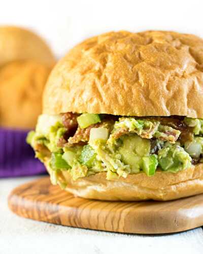 These Bacon Avocado Chicken Salad Sandwiches are loaded with crispy thick-cut bacon, creamy avocado, tender shreds of chicken, with crisp onions and celery mingled throughout!