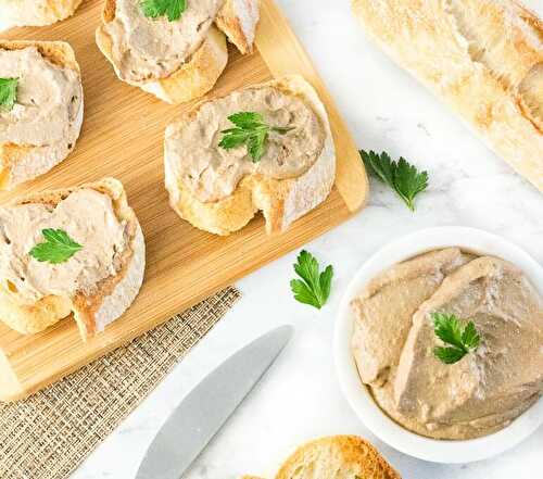 This richly flavored Chicken Liver Pate is the perfect creamy topping for a crusty baguette or cracker.