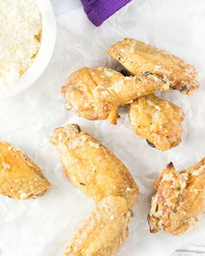 Garlic infused butter mixed with freshly grated Parmesan cheese coats each crispy bite of these baked Garlic-Parmesan Chicken Wings.