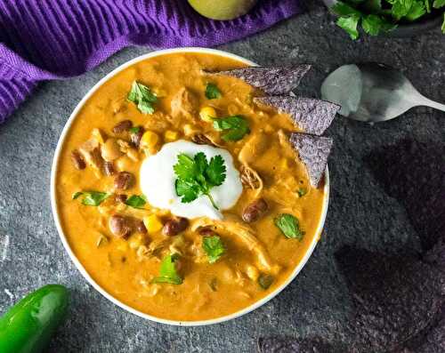 This rich and hearty Slow Cooker Chicken Queso Chili packs the big Mexican flavors you love in a savory cheese sauce you'll crave!