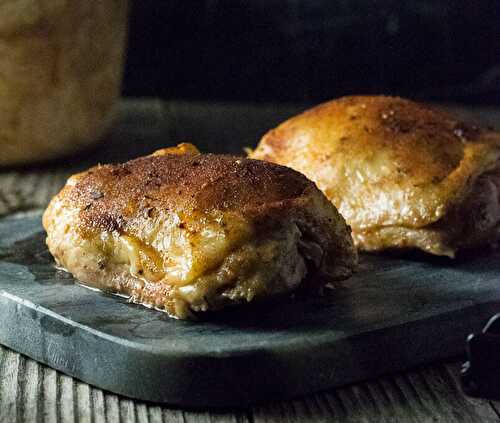 Slow cooker chicken thighs is an effortless meal solution resulting in outrageously tender chicken generously seasoned with a simple chicken seasoning rub.