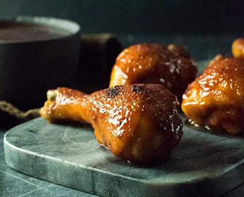 These baked BBQ chicken drumsticks are roasted to perfection and lacquered with a finger-lickingly sticky BBQ sauce.