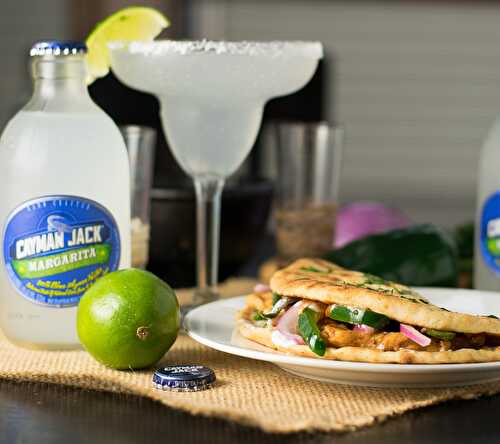 This Ancho Chicken Flatbread Sandwich with Cilantro and Lime has big bold flavors that pair perfectly with a Cayman Jack margarita!