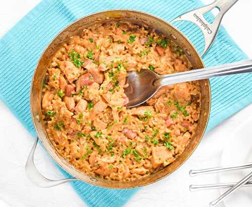 This Chicken Cordon Bleu Casserole with Rice recreates the classic flavors you love in an easy one skillet meal!