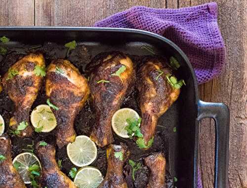 Aggressive doses of green onion, sweet molasses, and fiery habanaro punch you in the taste buds with succulent each bite into these Jamaican Jerk Chicken Drumsticks!