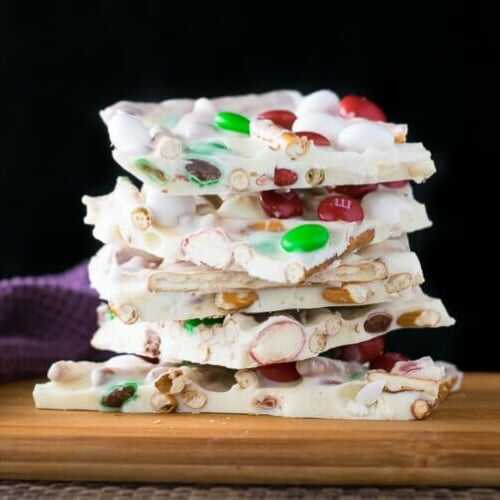 White Chocolate Christmas Bark is quick and easy holiday treat loaded with white chocolate, pretzels, and plenty of M&M's!