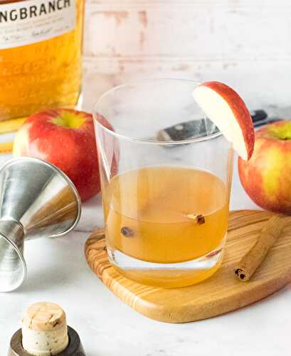 The crisp tartness of apple cider blends perfectly with the deep smokey flavors of bourbon and bitters in this whiskey cider fall cocktail.