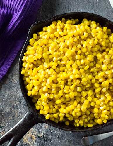Southern fried corn is a sweet and smoky side dish featuring tender sweet corn kernels sauteed in bacon drippings and seasonings.