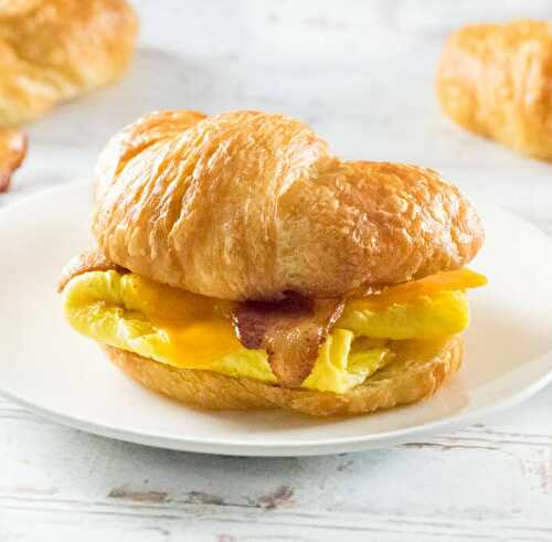 Get a delicious start to your day with this buttery croissant breakfast sandwich, loaded with tender eggs, crisp bacon, and melty cheese.
