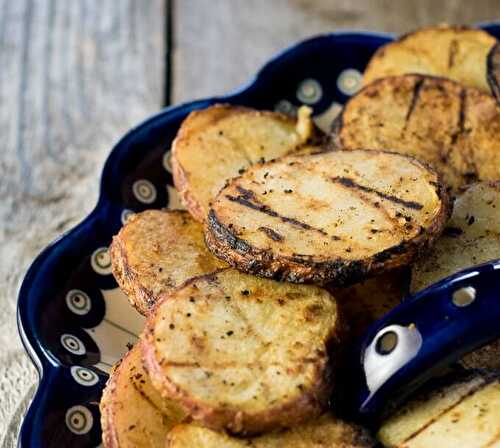 Grilled Dijon Potatoes are par-cooked then thrown on the grill till golden brown and delicious.