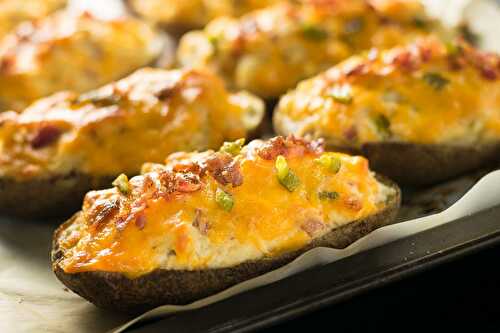 These jalapeno popper twice baked potatoes have a cheesy, creamy, classic popper taste in a potato!