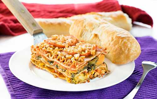This Engine 2 Healthy Vegetable Lasagna is brimming with hearty vegetables, creamy sweet potatoes and topped with crunchy bits of crushed cashews! Your family won't even care it is healthy!