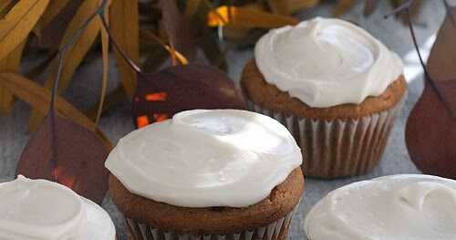 Tender gluten-free pumpkin cupcakes from Karina, Gluten-Free Goddess.