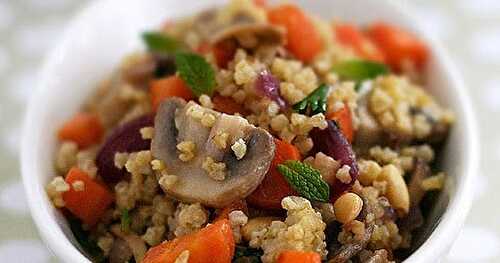 Lovely gluten-free millet side dish recipe with carrots, mushrooms and mint from Gluten-Free Goddess Karina.