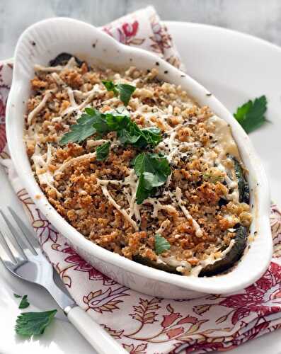Gluten-Free Goddess zucchini gratin recipe with gluten-free bread crumbs.
