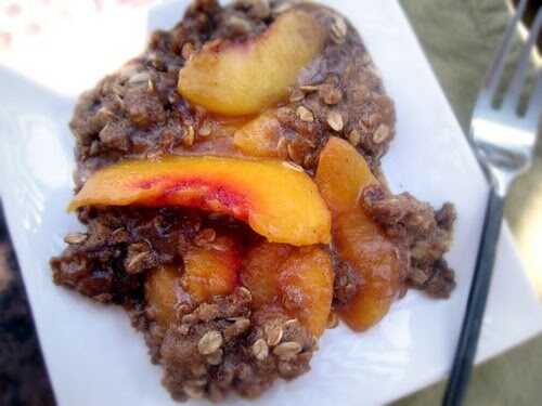 A fabulous gluten-free peach crisp recipe with gluten-free oats from Gluten-Free Goddess Karina.