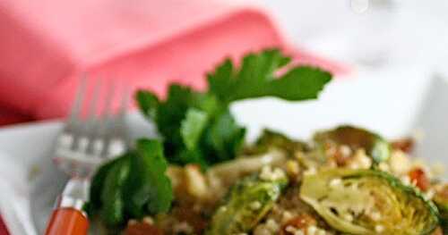 Karina's elegant yet easy quinoa recipe with roasted Brussels sprouts is gluten-free and vegan.