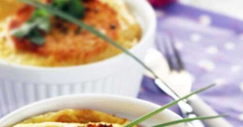 Easy, elegant gluten-free brunch- baked eggs with a golden toasted top, green chiles.