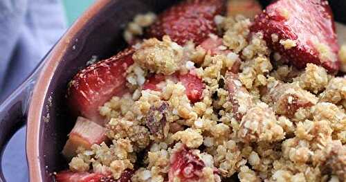 Beautiful gluten-free strawberry rhubarb crisp recipe with quinoa flakes.