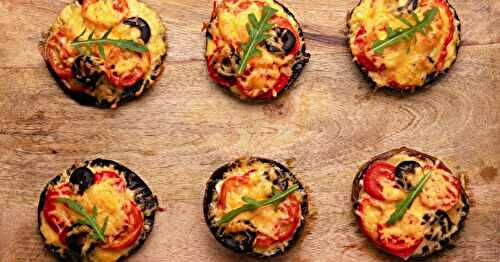 Enjoy Mushroom Pizzas as an appetizer or small meal! Made with portabella mushrooms as the crust, these pizzas are tasty and healthy.