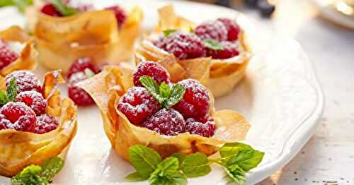 Satisfy your sweet tooth with these Sweet Tart Raspberry Phyllo Bites! Light, flaky phyllo shells filled with raspberries and creamy yogurt.