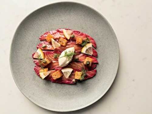 This salmon is cured in a salt mixture for 36 hours and then air-dried for 2 days to create the perfect texture.
