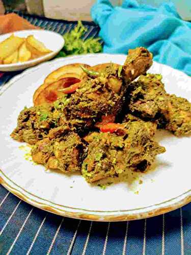 Pahadi kabab is a spicy green colored chicken kabab made using boneless chicken marinating in a yoghurt based marination with herbs and spices.