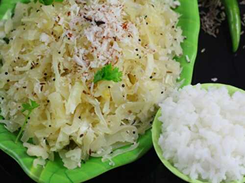 Cabbage poriyal recipe is a popular cabbage stir fry from the South Indian cuisine and it is a plain curry made of cabbage by adding some simple spices in it.