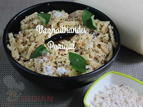 Vazhai thandu (Banana stem) is a versatile vegetable In India and we can prepare quite a lot of dishes with vazhai thandu like kootu, pachadi, soup, juice, thogayal and sabzi.