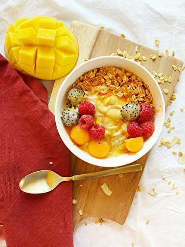 This Mango Smoothie Bowl is made with just three simple ingredients! It features sweet mango, protein packed cashew butter, and delicious almond milk.