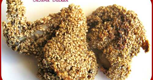 Ingredients: Chicken- 1 kg Beaten eggs- 2 Sesame seeds- 250 gms All purpose flour- 1 cup Dark soya sauce- 1 tbspn Ginger- garli.