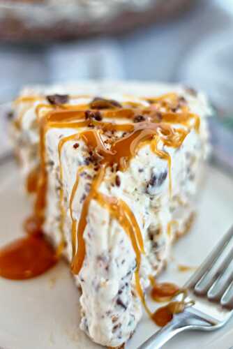 Super creamy and cold with crunchy bits of toffee, this Gluten Free Frozen Candy Bar Pie is the perfect easy summer treat!