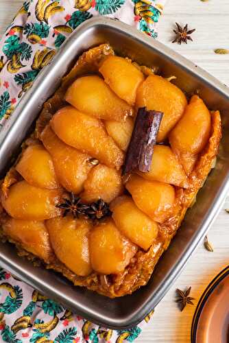 This classic pie was reinvented with pear, cinnamon, star anise and topped with a crispy golden puff pastry thats inverted and baked to perfection.