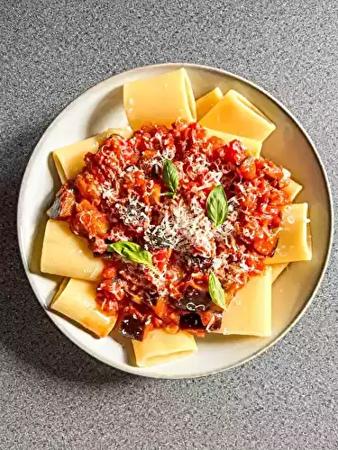 This Paccheri and Eggplant Pasta is the transformed version of Pasta Alla Norma into a simpler dish, without any oven roasting.