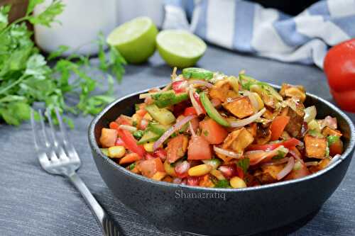 A healthy, delicious, and easy salad with loads of fresh vegetables tossed in a spicy, sweet, and tangy dressing.