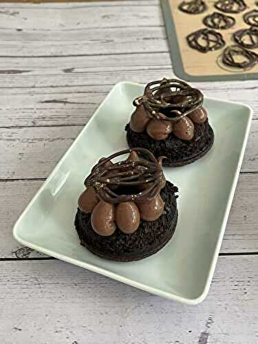 Delicate little chocolate cakes, filled with a Baileys style Irish Cream and topped with a rich chocolate ganache and shaved chocolatedairy-free, egg-free, nut-free, soya-free, sesame, vegetarian and vegan