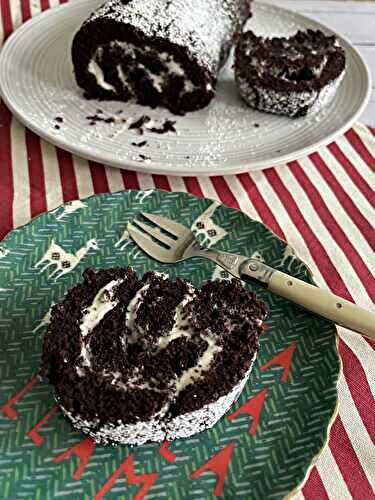 A beautiful chocolate roulade filled with cheesecake creamdairy-free, egg-free, nut-free, sesame-free, soya-free, vegetarian and vegan