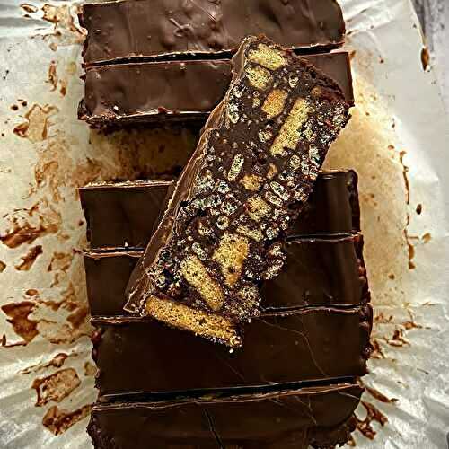 Copycat recipe made vegan - this is a dupe for the Chocolate Tiffin Bars you find in Pret (dairy-free, egg-free, nut-free, sesame-free, can be soya-free, can be gluten-free, vegetarian and vegan)