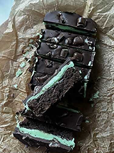 Chocolate biscuit base, topped with mint flavoured fondant and chocolate