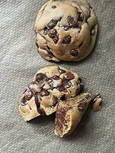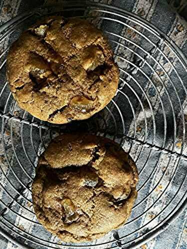 Giant cookies with a gooey interior and crispy edgesdairy-free, egg-free, nut-free, soya-free, sesame-free, vegetarian and vegan