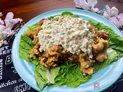 Chicken Nanban, deep fried and marinated in a tangy sauce and topped with delicious tartar sauce loaded with eggs, onions and cucumber.
