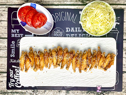Crispy and delicious Nagoya chicken wings are double fried without any coating, tossed in a sweet a s spicy sauce and topped with sesame seeds
