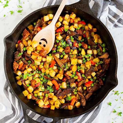 Isn’t a hearty vegan breakfast is the best way to start your day? Fire up your skillet and make fried potatoes, crispy oyster mushroom jerky mixed with a rainbow of veggies like green peans, onions, and bell peppers to create a delicious vegan hash.
