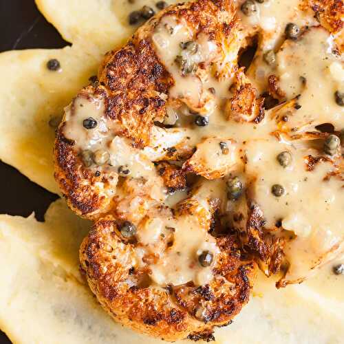 If you cut cauliflower into thick slices, season them generously, and roast them until tender inside but crispy on the other side, you will get delicious vegan cauliflower steaks.