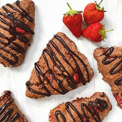 Chocolate Strawberry Vegan Scones for a healthy and indulgent snack or dessert Chocolate and strawberry is such a classic combination! In this recipe I combined chocolate and strawberries to create these healthy, gluten free and vegan scones! These.