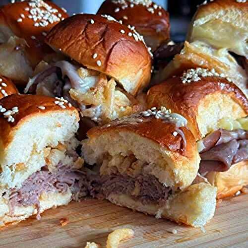 These roast beef sliders on Hawaiian rolls present a fantastic combination of tender, succulent meat, and gooey melted cheese in bite size form!