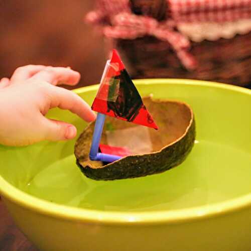 Save those avocado skins to make this adorable avocado boat craft! Add a mini sail and figurine, and place in a bowl of water.
