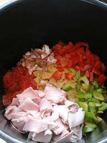 Recipe One pot pasta with pepper,ham and bacon instant pot - Do you have a few fresh tomatoes and pepper from the garden? Try that quick an simple recipe mixing everything in a pot with pasta.